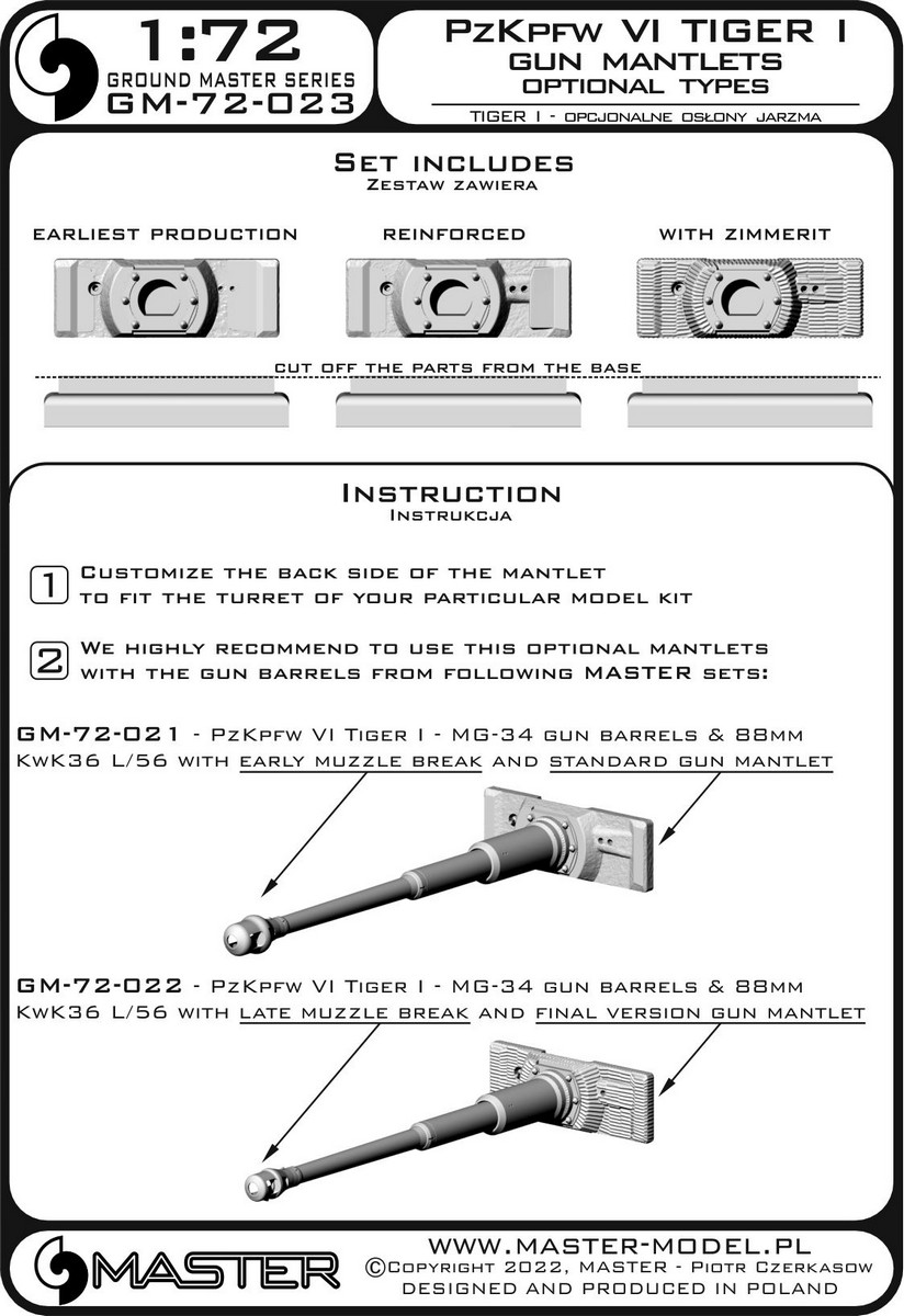 Master (PL) - 1/72 Pz.Kpfw.VI Tiger I gun mantlets 3 optional types to be used with gun barrels from sets GM-72-021 & GM-72-022