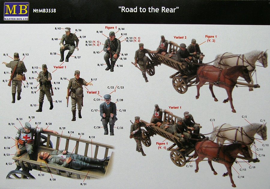 Masterbox - 1/35 Road to the Rear (5x figures+2x horses+cart)