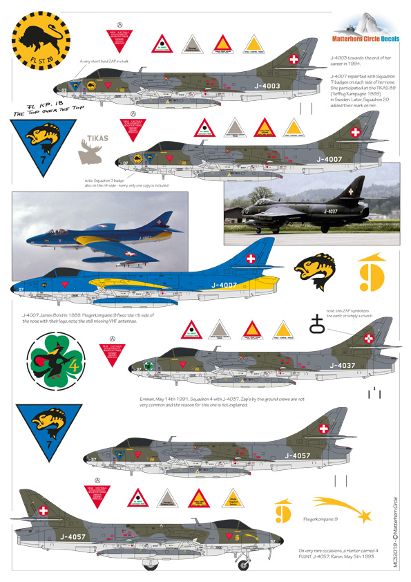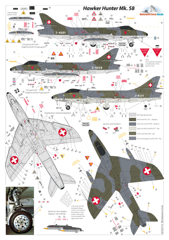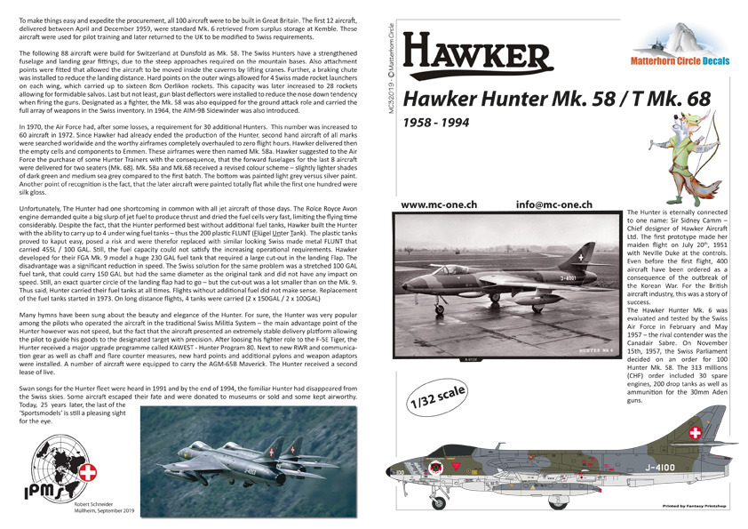 Matherhorn Circle - 1/32 Swiss Air Force Hawker Hunter Mk.58 / T Mk.68 decals