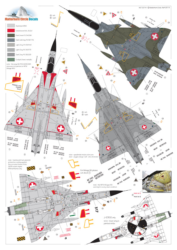 Mc-one - 1/72 Mirage IIIS & RS decals with paint masks from Mattherhorn Circle