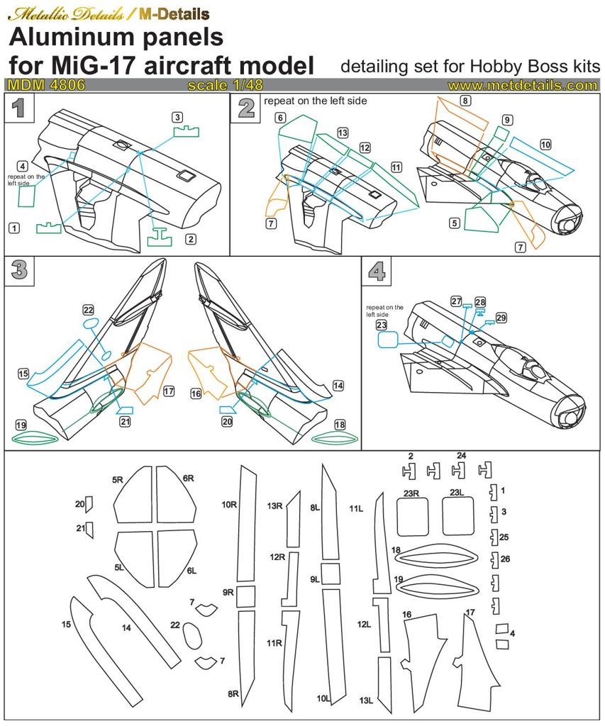 Metallic Details - 1/48 Mikoyan MiG-17 Aluminium panels (for Hobby Boss kits)