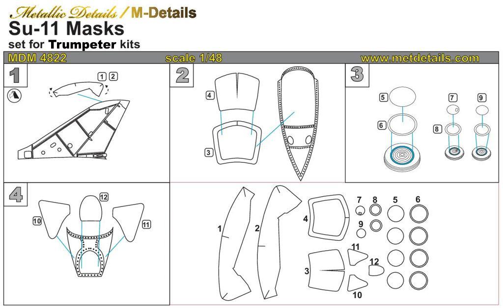 Metallic Details - 1/48 Sukhoi Su-11 Masks (for Trumpeter kits)