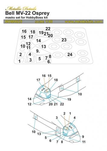Metallic Details - 1/48 Bell MV-22 Osprey. Masks for Hobby Boss