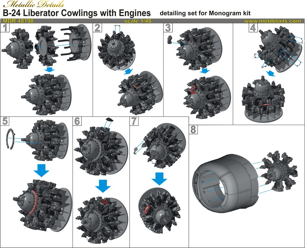 Metallic Details - 1/48 Consolidated B-24 Liberator Cowlings with engines (Monogram)