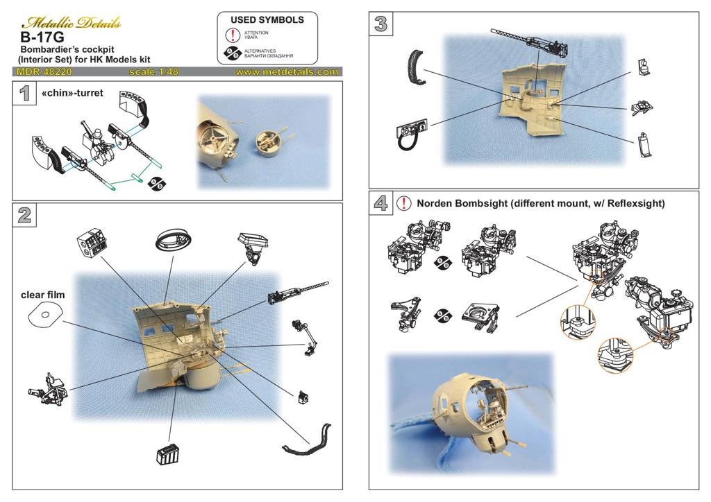 Metallic Details - 1/48 Boeing B-17G Flying Fortress Bombardier's cockpit Interior setfor Hong Kong Model kits