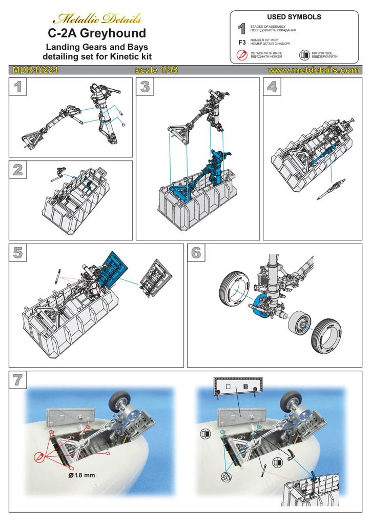 Metallic Details - 1/48 Grumman C-2A Greyhound Landing gears and bays for Kinetic