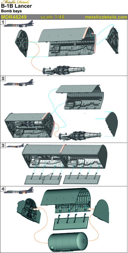 Metallic Details - 1/48 Rockwell B-1B Lancer bomb bays 3d-printed for Monogram and Revell
