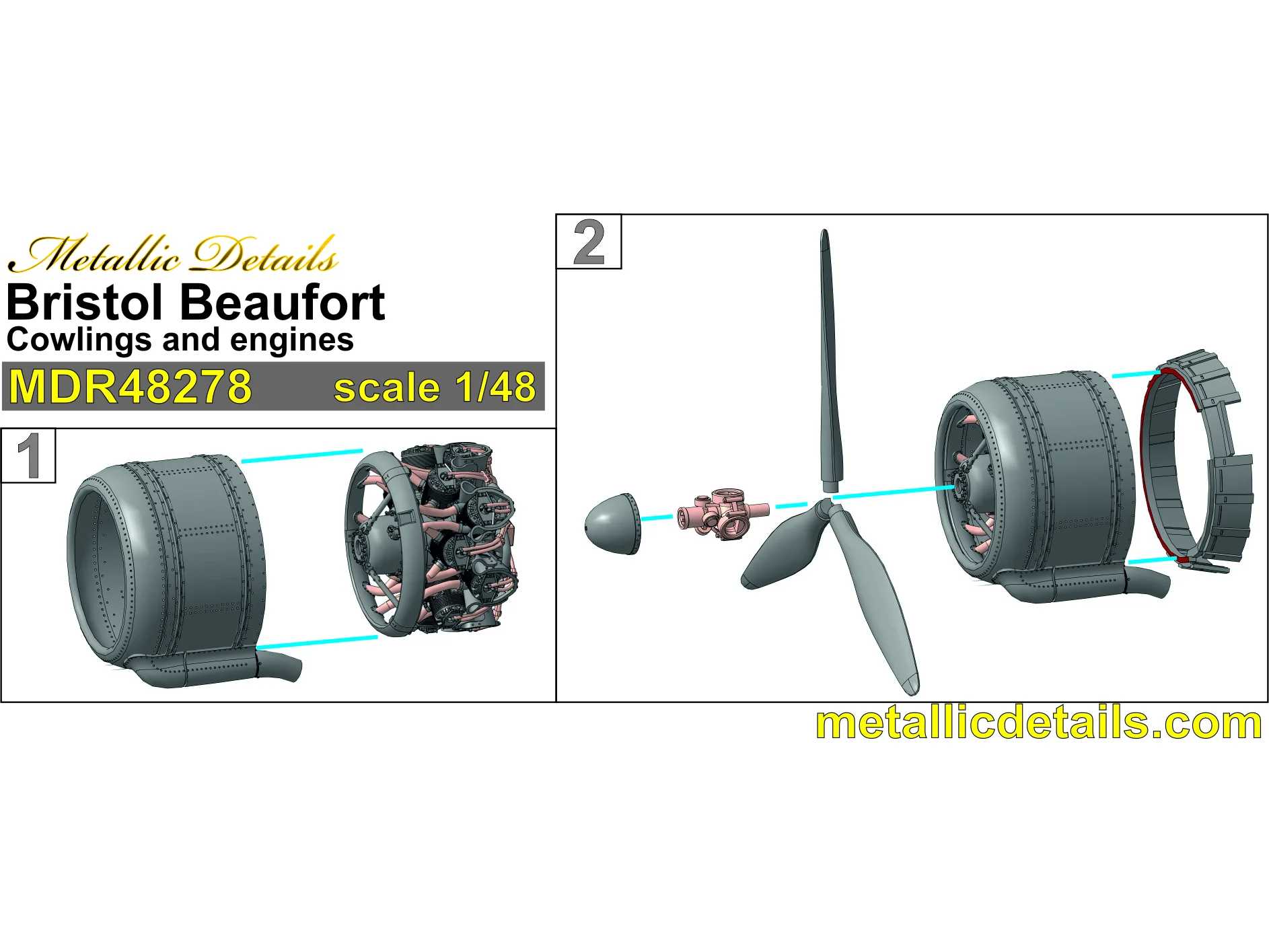 Metallic Details - 1/48 Bristol Beaufort Mk.I/Mk.IA Cowlings and engines for Icm 3d-printed