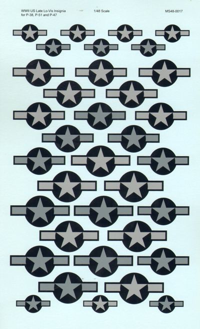 Microscale - 1/48 WWII U.S. Lat Lo-Vis Insignia for Lockheed P-38's Lightning, North-American P-51D's Mustangs & Republic P-47S's Thunderbolts