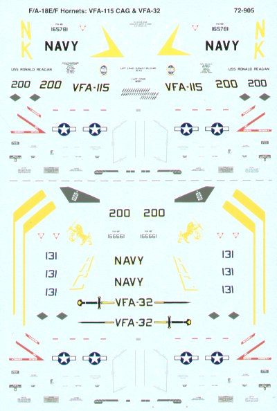 Microscale - 1/72 Boeing F/A-18E F/A-18F Super Hornets (2) E 165781 NK/200 VFA-115 Eagles Black fins USS Ronald Reagan 2005, F 166661 AC/131 VFA-32 Swordsmen Insignia blue fins