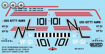 Milspec - 1/48 Grumman F-14A Tomcat VF-51 SCREAMING EAGLES F-14A, BUNO 160665 / NL101, USS KITTY HAWK (CV-63) CVW-15, 1979
