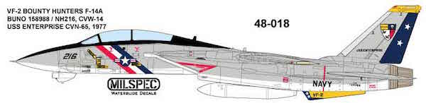 Milspec - 1/48 Grumman F-14A Tomcat VF-2 Bounty Hunters BUNO 158988/NH216 CVW-14 USS Enterprise CVN-65, 1977