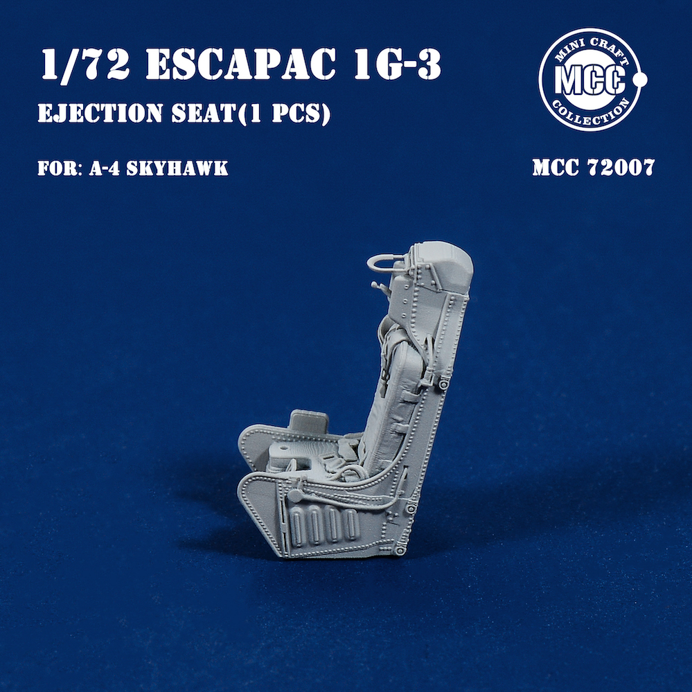 Mini Craft Collection - 1/72 Escapac 1G-3 Ejection Seat for A-4 Skyhawk 1pcs. 1 pcs of Escapac 1G-3 ejection seat, For A-4 Skyhawk. All parts are made by 3d-printed. Fits all brands