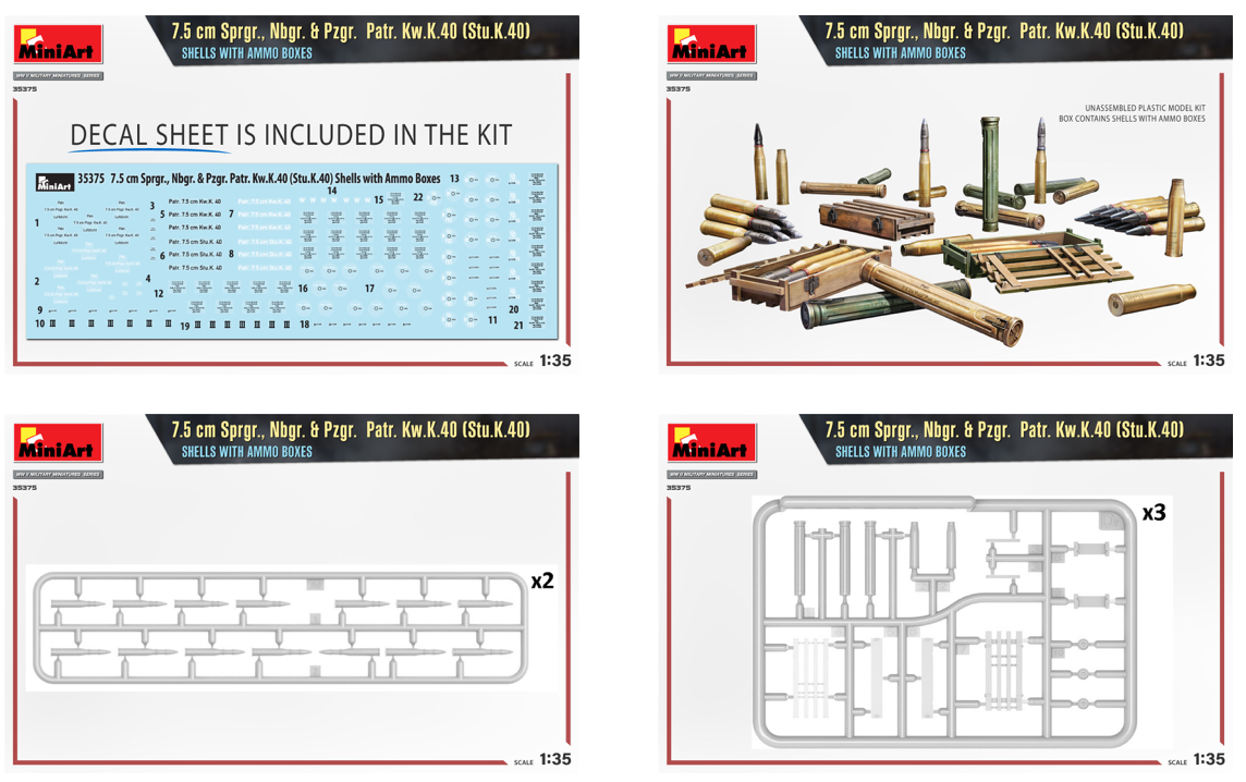 Miniart - 1/35 7.5 cm sprgr., nbgr. & pzgr. patr. kw.k.40 (stu.k.40) shells with ammo BOXES