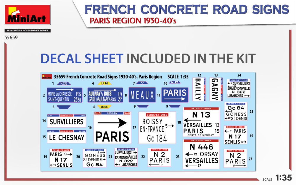 Miniart - 1/35 French concrete road signs. paris region 1930-40's