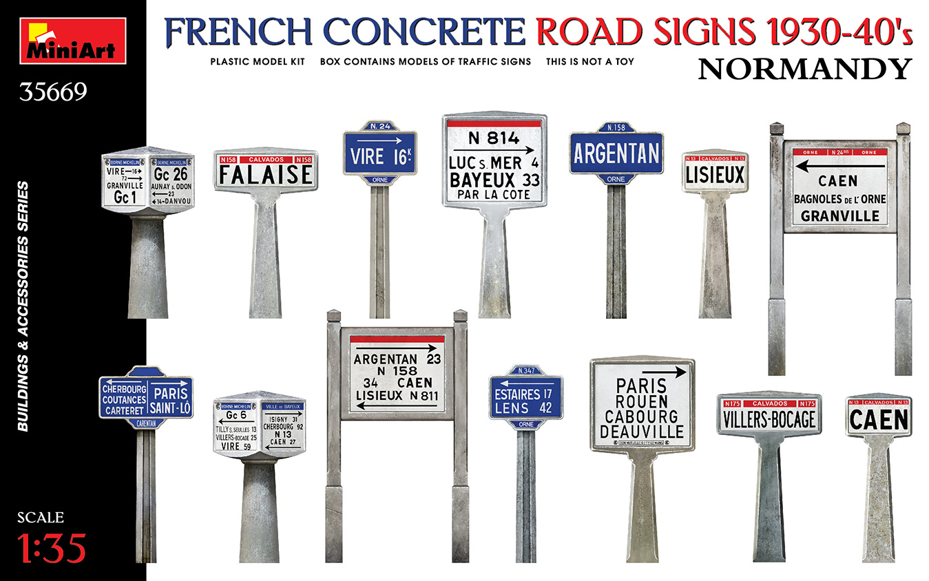 1/35 French Concrete Road Signs, Normandy 1930-40s