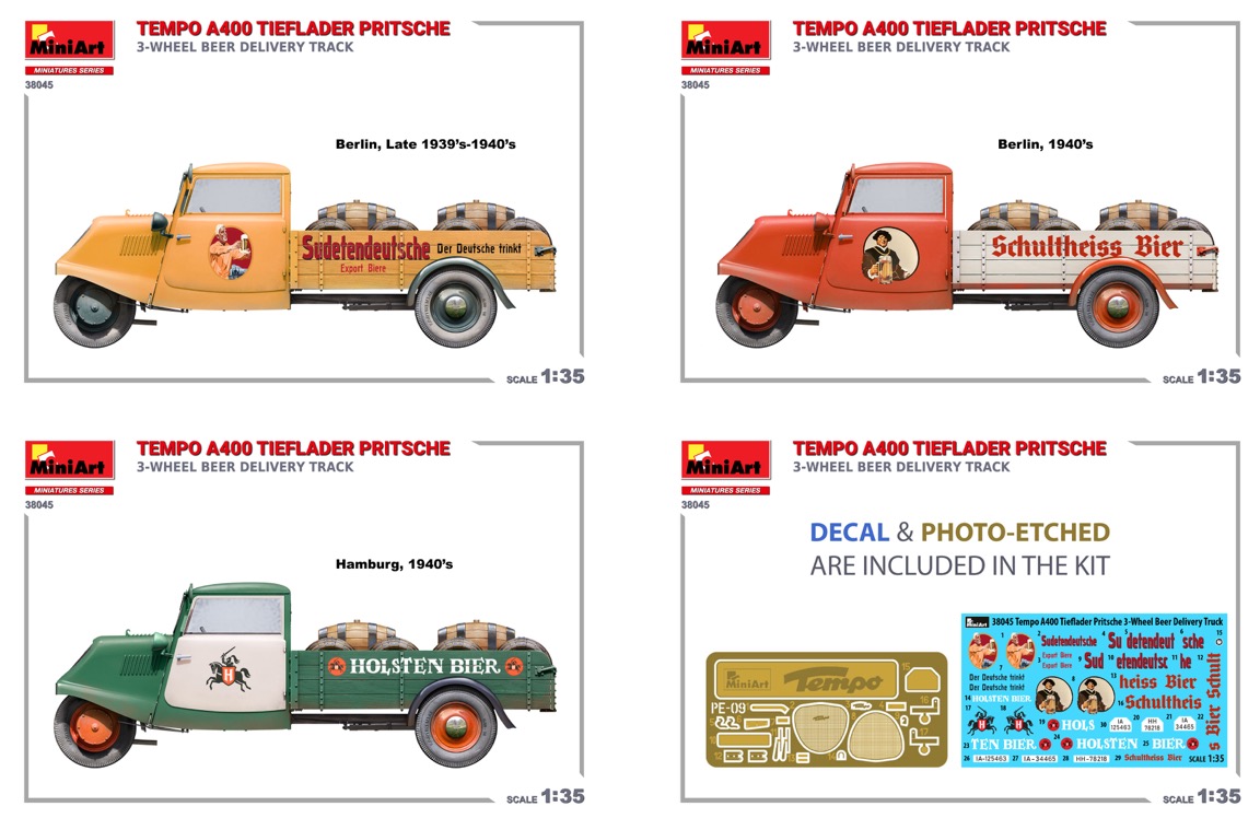 MiniArt - 1/35 Tempo a400 tieflader pritsche 3-wheel beer Delivery TRUCK