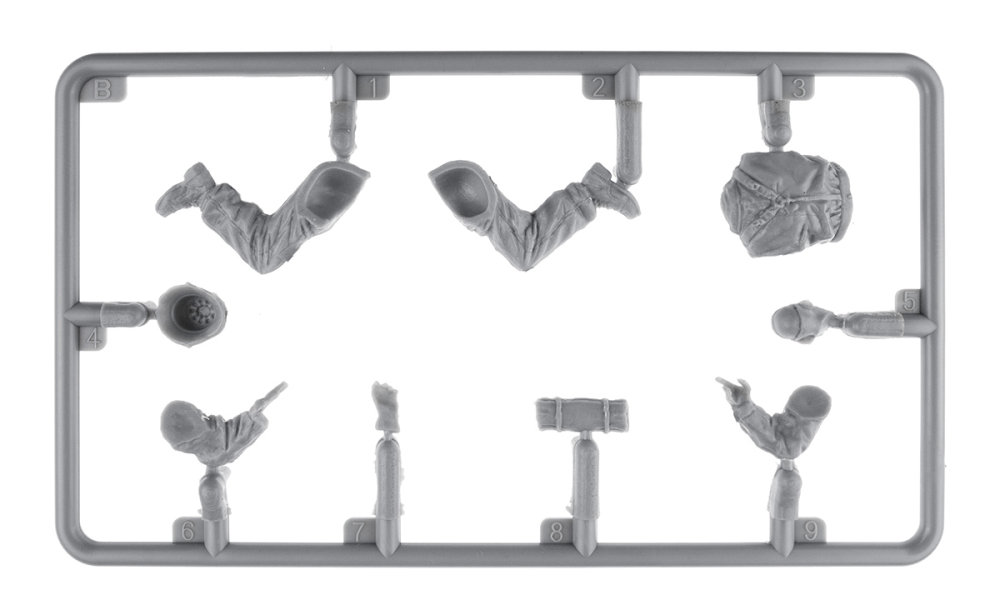 plastic model kit 1:35 scale. this kit features four detailed figures of German tank riders, complete with resin heads and weapons.