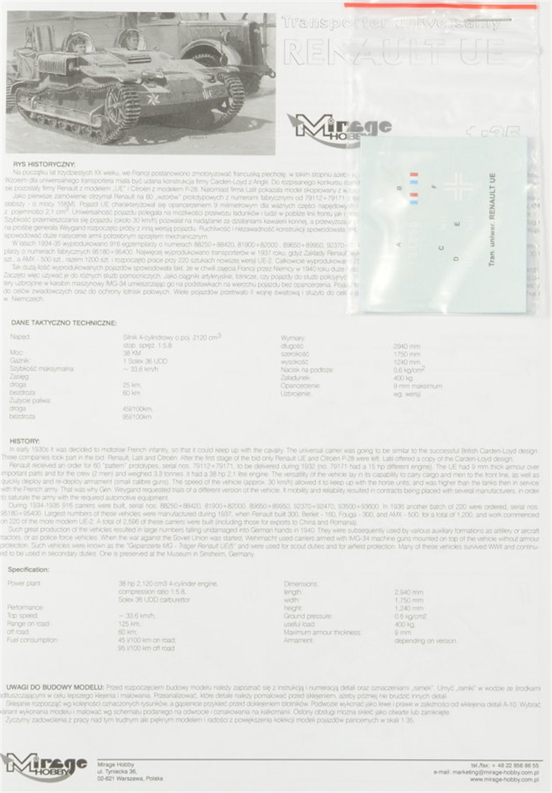 MIRAGE HOBBY - MODEL SET 1/35 Renault UE Universal Scout Carrier