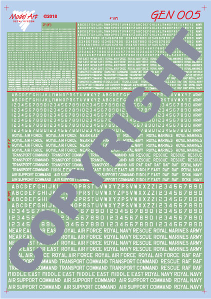 Post-war RAF Lettering (in white 1:72 2, 4, 6 and 8 inch letters, numerals & logos Royal Navy, Royal Air Force, Royal Marines, Army, RAF Rescue, Transport Command, Support Command. Can also be used for 1:144