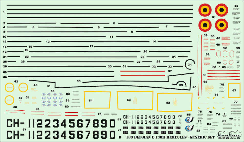 Model Maker - 1/72 Belgian Lockheed C-130H Hercules stencilling Generic set