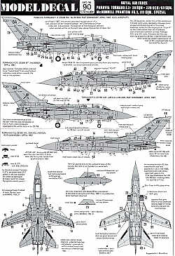 Modeldecal - 1/72 RAF McDonnell-Douglas FG.1 Phantom XV574/Z 111 Sqn 1985/87 with black spine and fin, two versions. Panavia Tornado F.3. ZE203/BA or ZE208/BT 29 Sqn, ZE156/AM or ZE158/AK 229OCU/65Sqn all 1987,