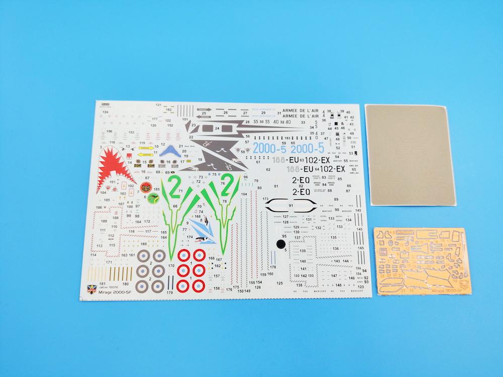 In relation to the previous Mirage 2000C set (MSVIT72073) the new kit has different tail, nose fuselage section, instrument panel and a new 4 under fuselage pylons with additional missiles