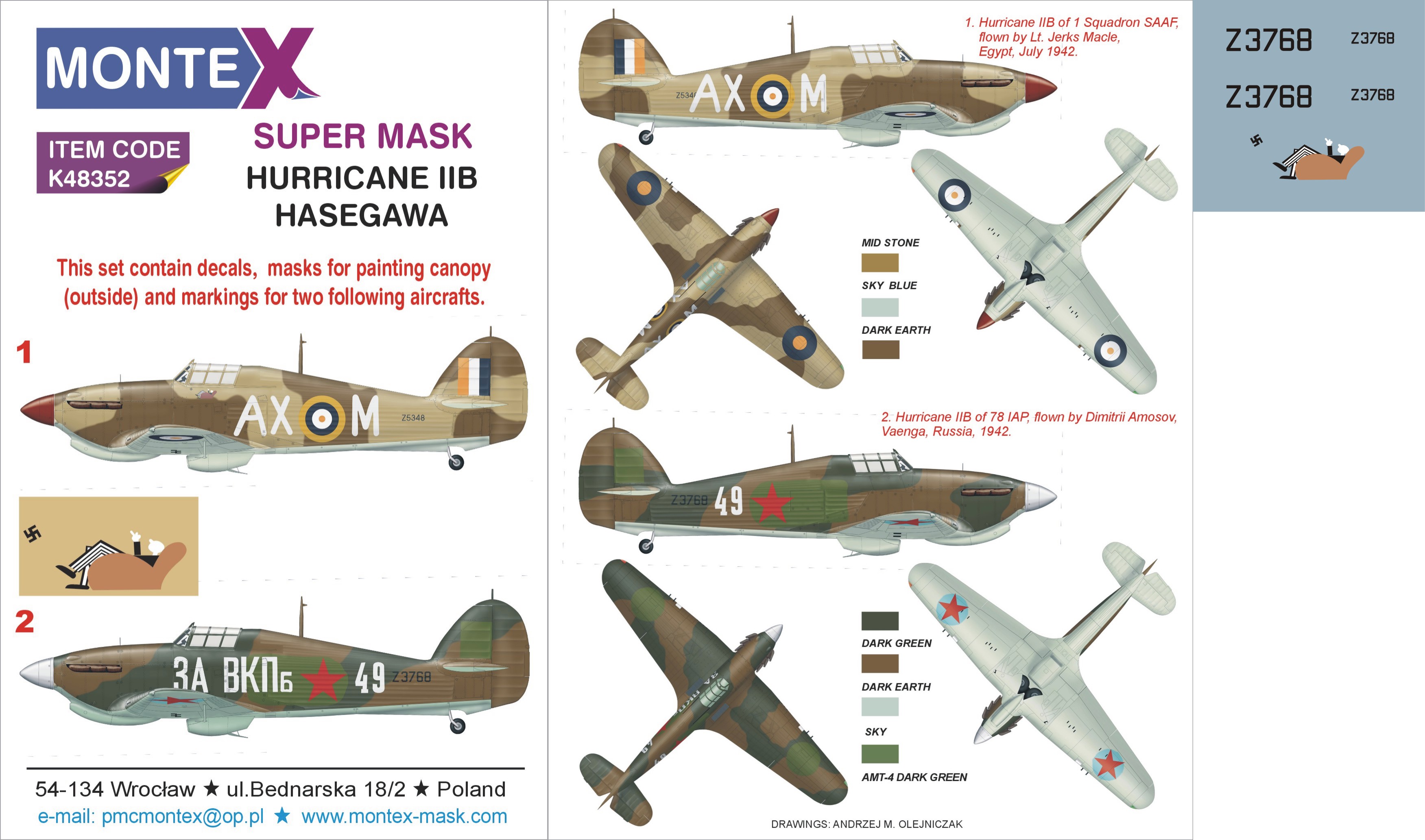 Montex - 1/48 Hawker Hurricane Mk.IIB 1 canopy mask (outside) + 2 insignia masks + decals (for Hasegawa kits)