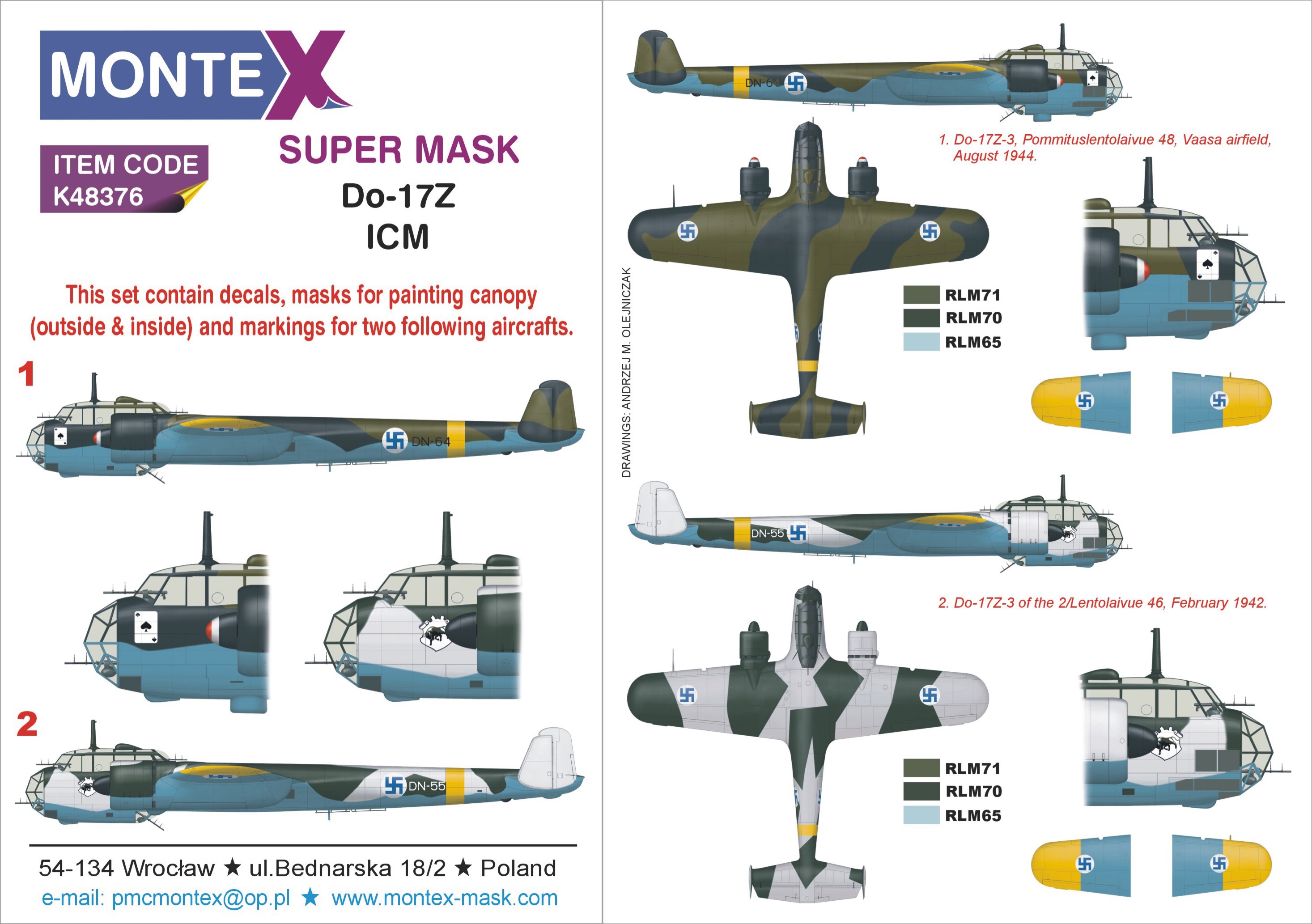 Montex - 1/48 Dornier Do-17Z-3 (for Icm kits) canopy mask (outside & inside) + 1 insignia masks + decals