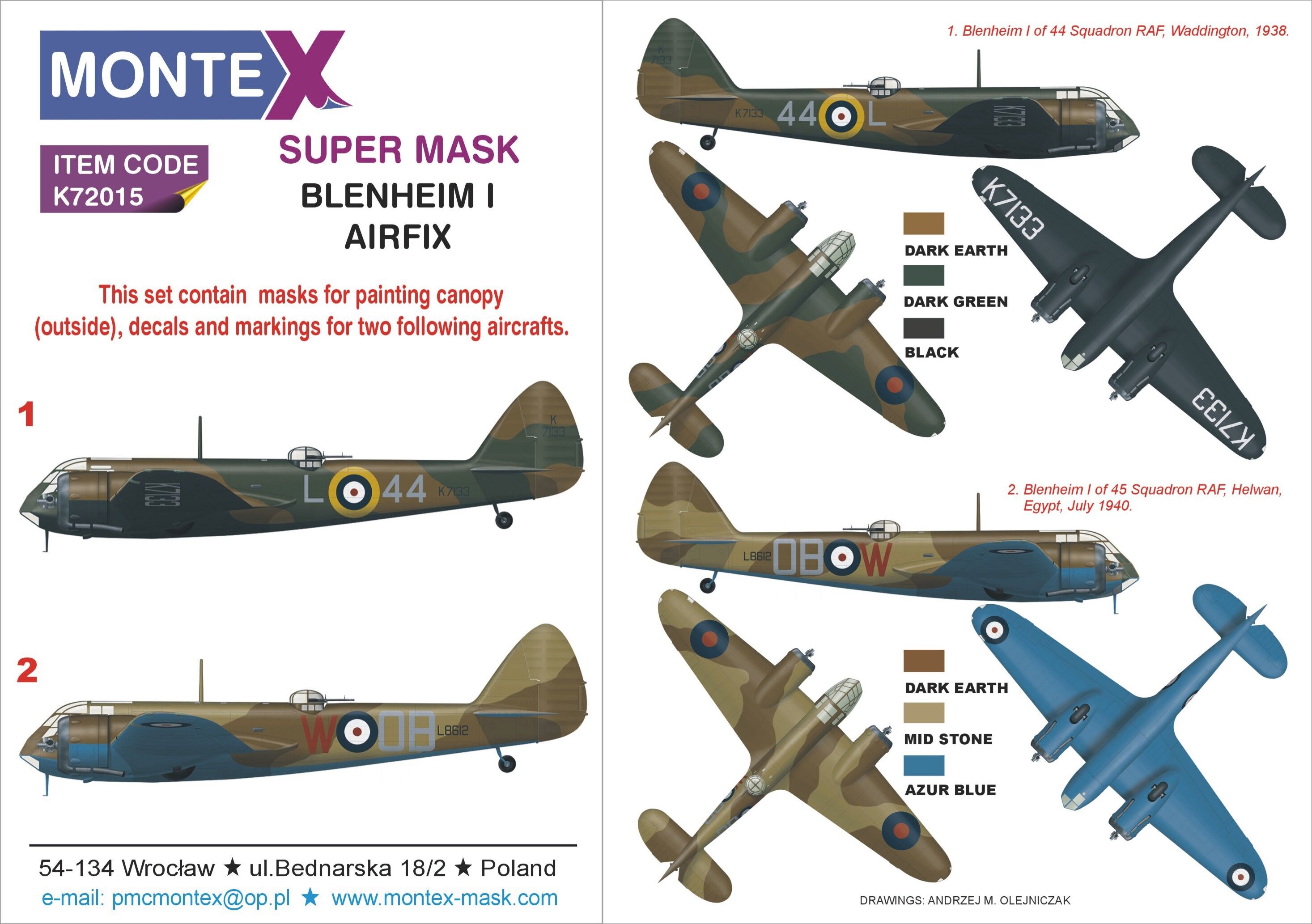 Montex - 1/72 Bristol Blenheim Mk.IF Raf 1 canopy mask (outside) + 1 insignia masks + decal (designed to the used with Airfix kits)