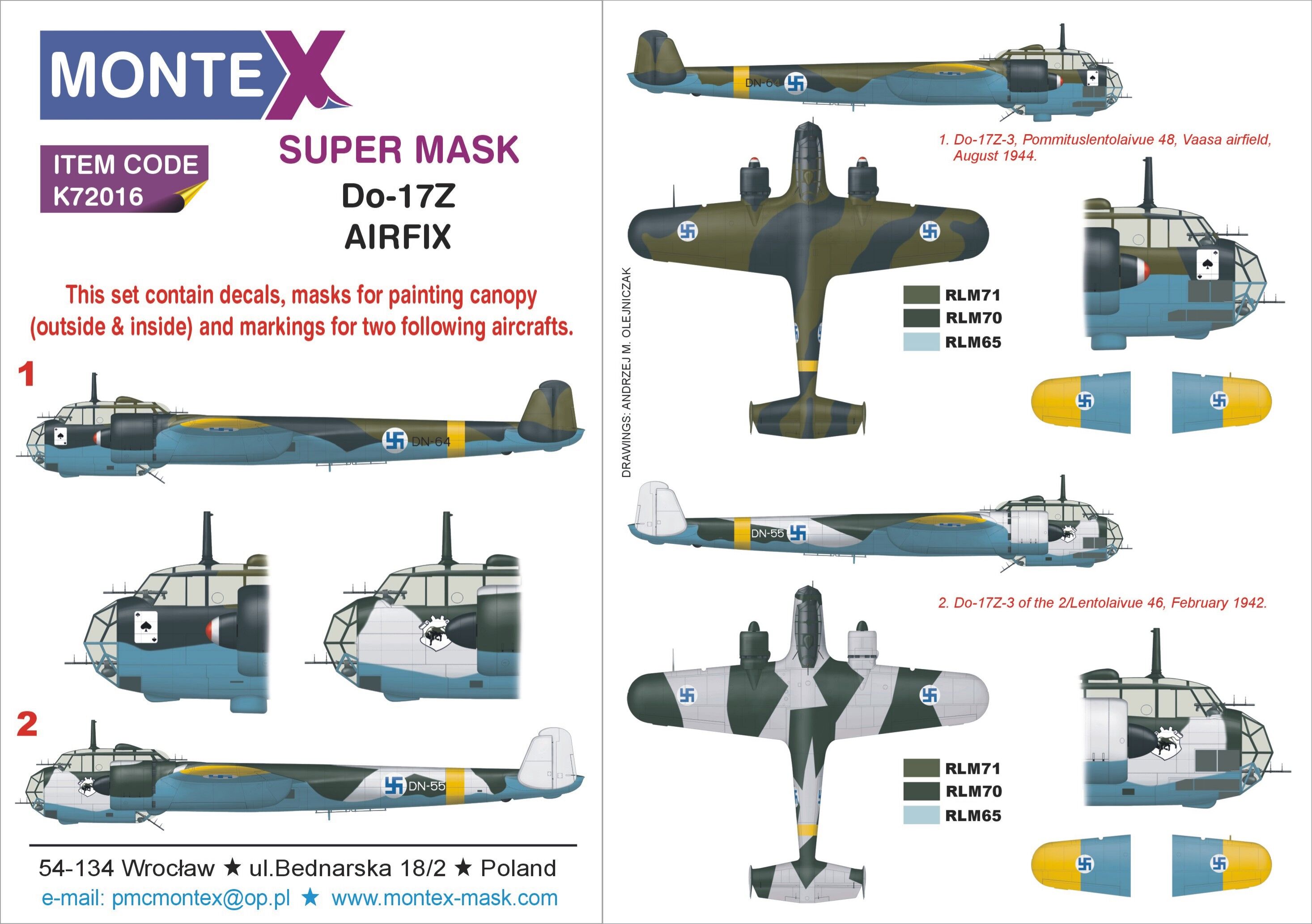 Montex - 1/72 Dornier Do-17Z 1 canopy mask (outside) + 1 insignia masks + decals(for Airfix kits)