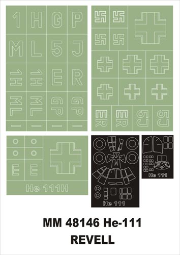 Montex - 1/48 Heinkel He-111-6 1 canopy masks (exterior) + insignia and markings masks (for Monogram and Revell kits)