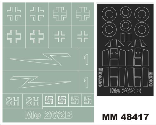 Montex - 1/48 Messerschmitt Me 262B-1a 2 canopy masks (outside & inside) + 1 insignia masks (designed to be used with Hobby Boss HB80378 kits)