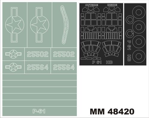 Montex - 1/48 Northrop P-61A Black Widow 2 canopy masks (outside & inside) + 1 insignia masks (designed to be used with Hobby Boss HB81730 kits)