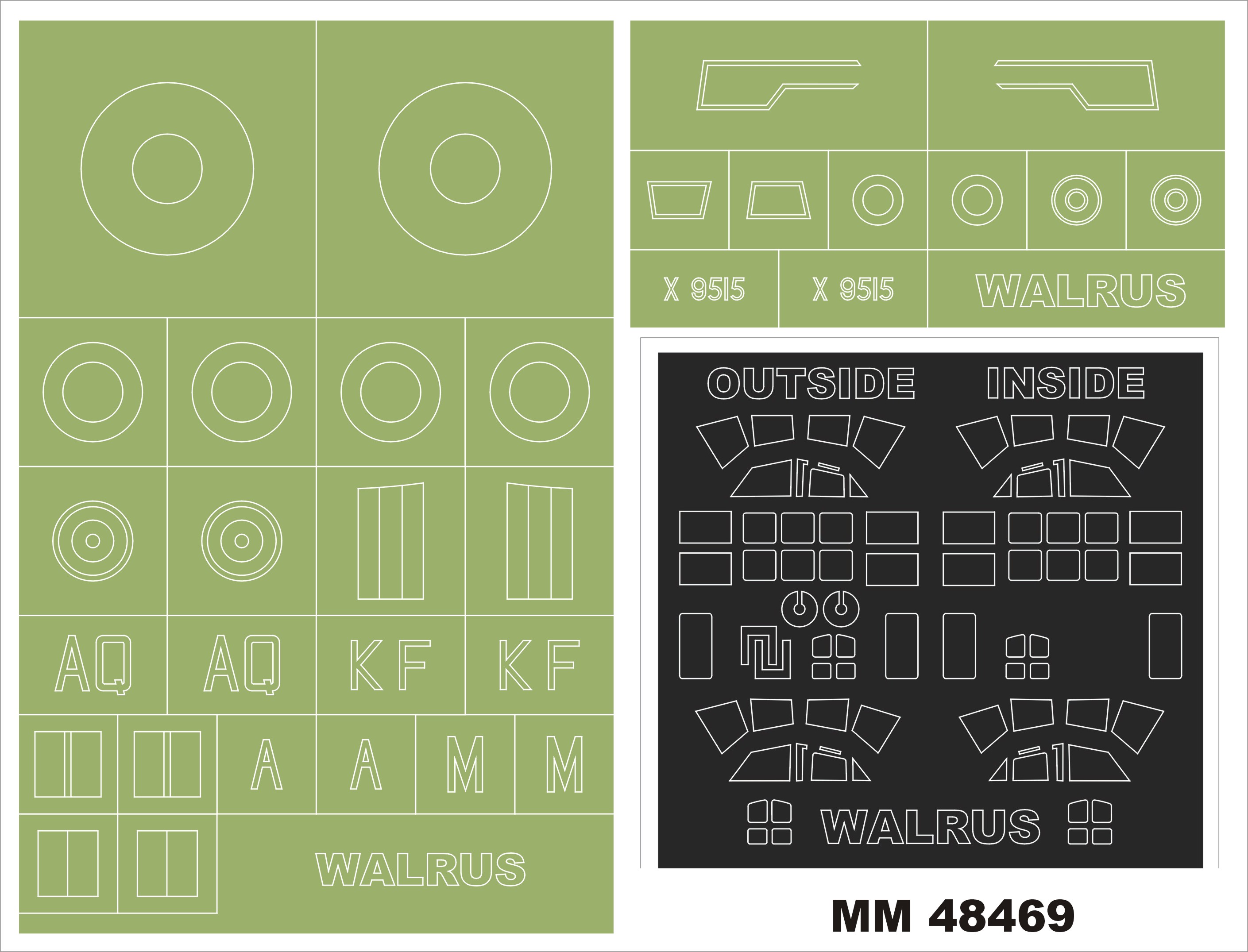 Montex - 1/48 Supermarine Walrus Mk.I 2 canopy masks (outside & inside) + 2 insignia masks (for Airfix kits)