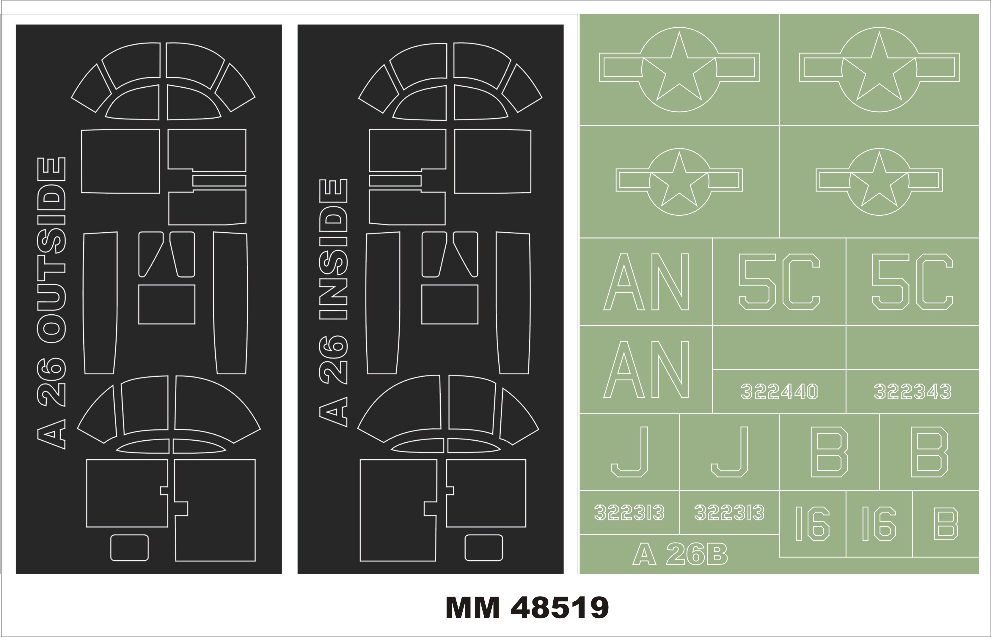 1/48 Douglas A-26B Invader 2 canopy masks + insignia masks