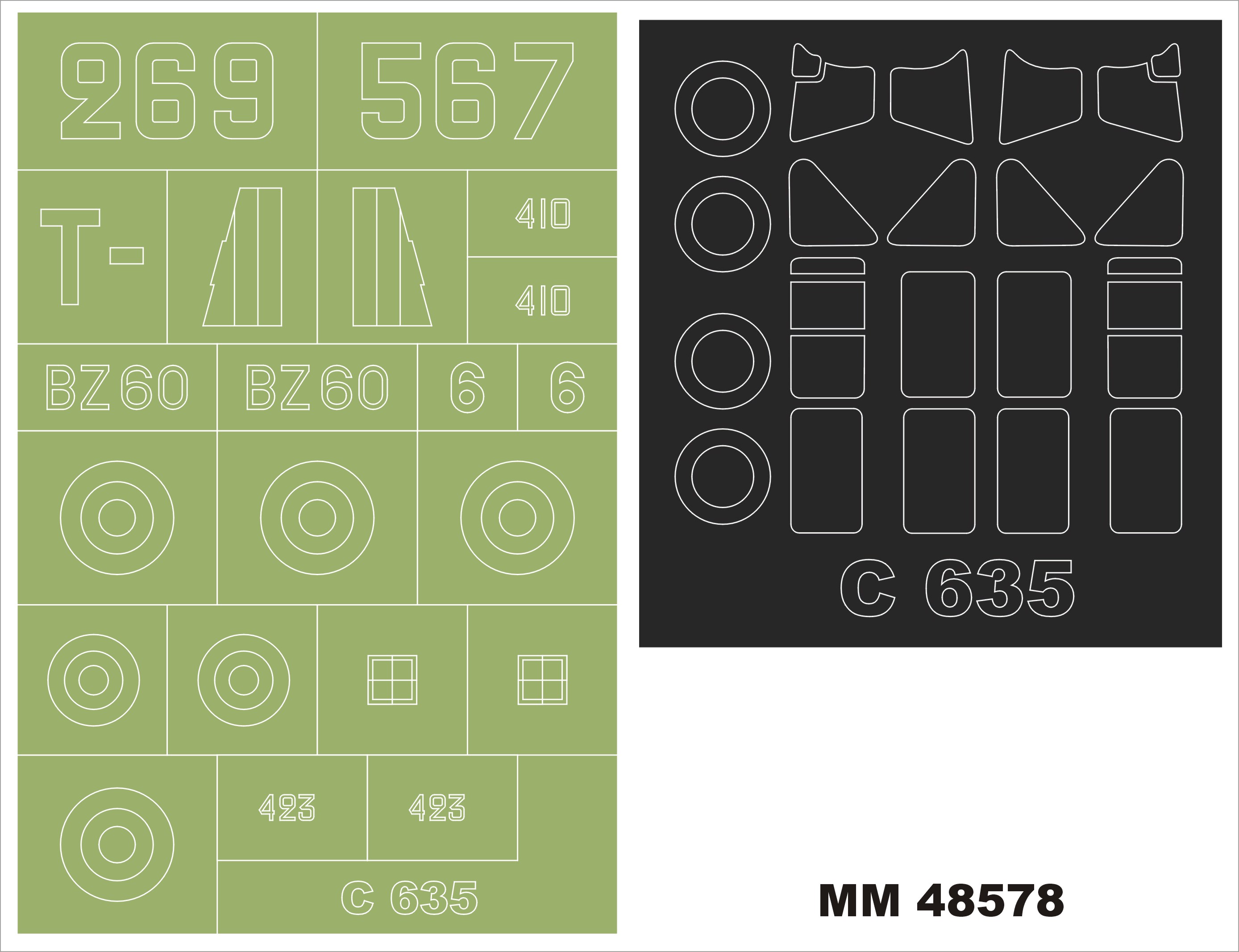 1/48 Caudron C.635 2 canopy masks outside & inside & insignia