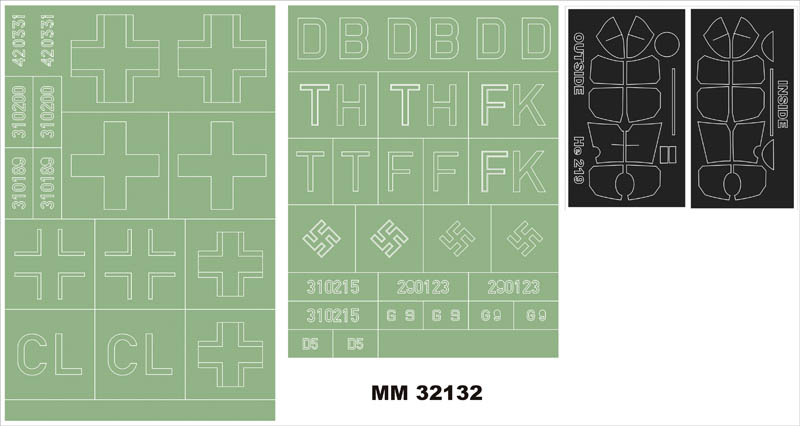 Montex - 1/32 Heinkel He-219A-2/He-219A-5/He-219A-7 2 canopy masks (exterior and interior) insignia and markings masks (for Revell kits)