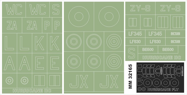 Montex - 1/32 Hawker Hurricane Mk.IIC (for Fly kits) 2 canopy masks (outside & inside) + 3 insignia masks