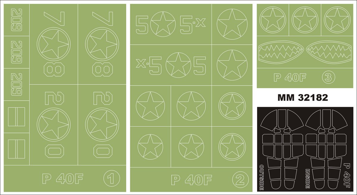 1/32 Curtiss P-40F Warhawk 2 canopy masks + 3 insignia masks