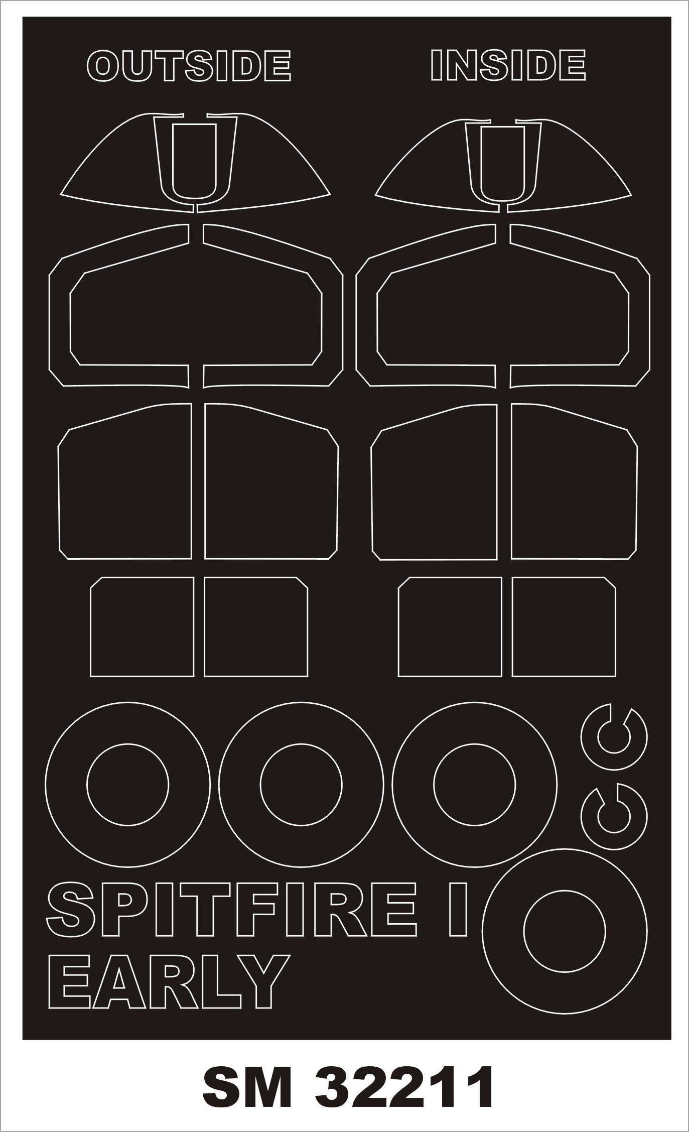 Montex - 1/32 Supermarine Spitfire Mk.I Early wheels and canopy frame paint mask inside and outside for Kotare