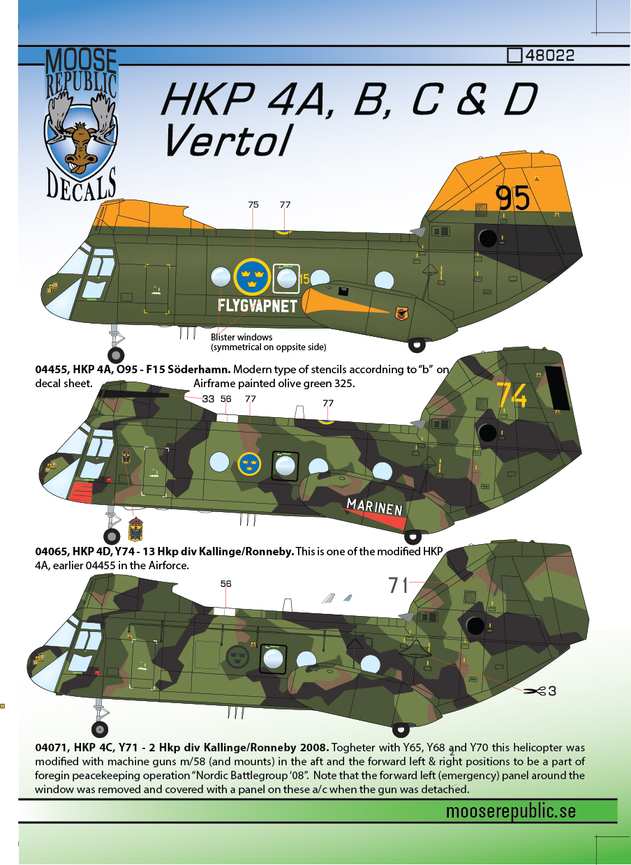 Moose Republic Decals - 1/72 Hkp 4A/B/C/D Vertol