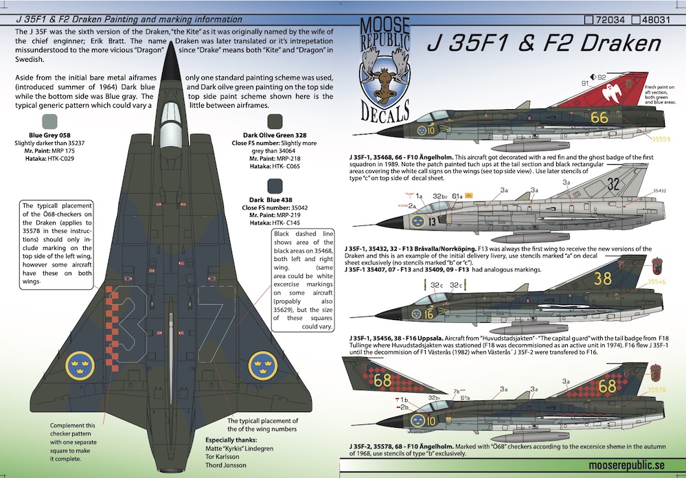 Moose Republic Decals - 1/72 Saab J-35F-1/J35F-2
