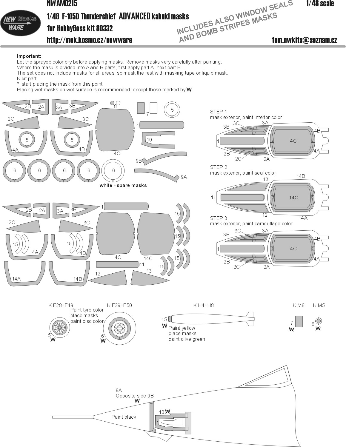 New Ware - 1/48 Republic F-105D Thunderchief ADVANCED Mask set (for Hobby Boss kits)