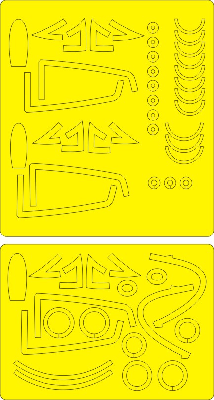 aircraft canopy including window seals and inner side masks, wheels, position lights, air intakes, fuel tanks, yellow stripes on bombs (for Trumpeter kits)