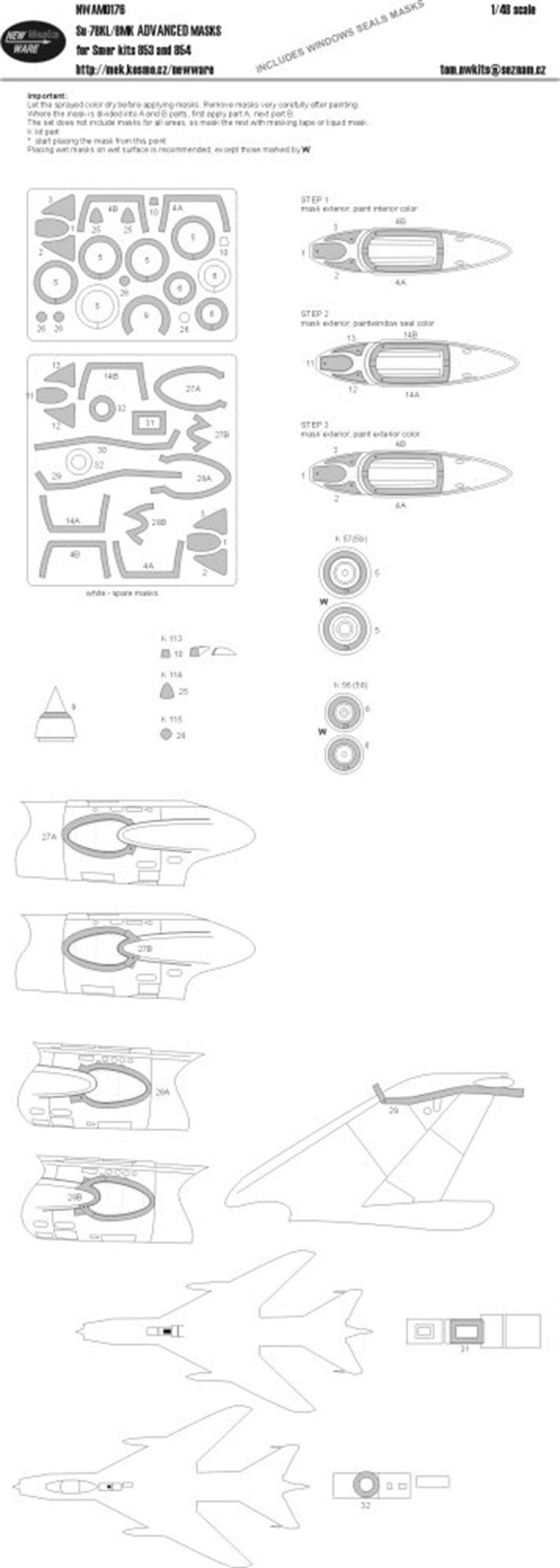 New Ware - 1/48 Sukhoi Su-7BKL/Su-7BMK ADVANCED kabuki masks aircraft canopy including window seals, wheels, periscope, position lights, radome, landing lights, different camouflage elements (for KP/Kopro, OEZ and SMER kits)