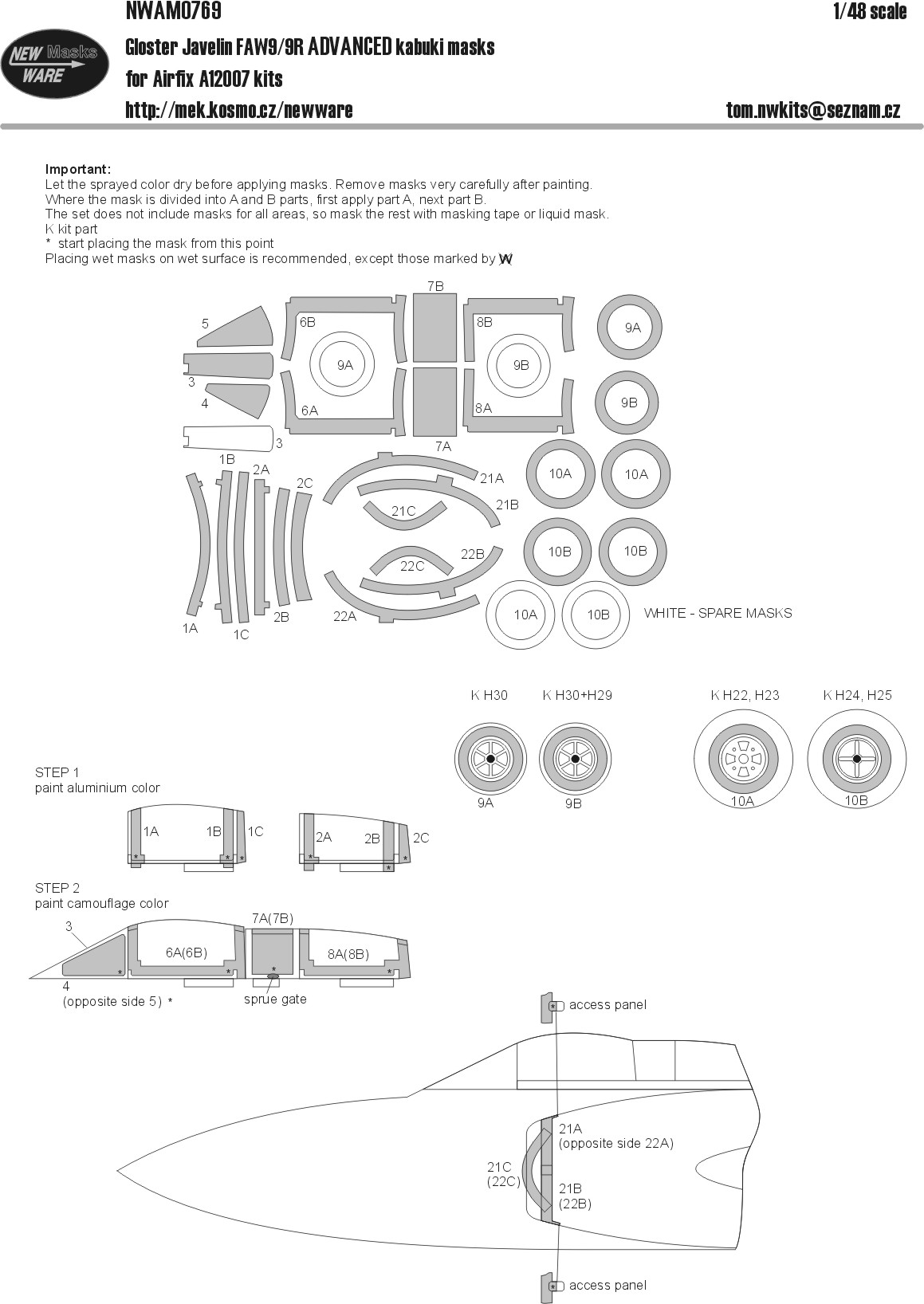 New Ware - 1/48 Gloster Javelin FAW.9/FAW.9R Advanced kabuki masks aircraft canopy, wheels, air intakes (for Airfix kits)