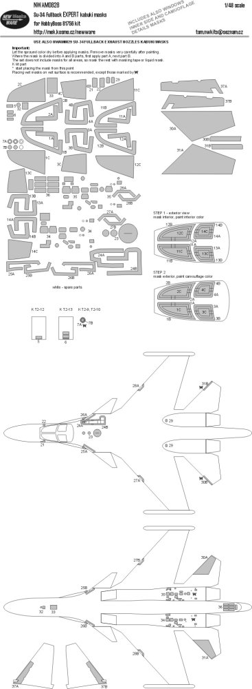 New Ware - 1/48 Sukhoi Su-34 Fullback Expert kabuki masks aircraft canopy including inner side masks, other clear parts, a lot of camouflage details (for Hobby Boss kits)