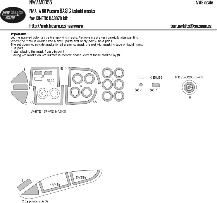 New Ware - 1/48 Fma IA-58 Pucara Basic Kabuki Masks (for Kinetic K48078 kit)