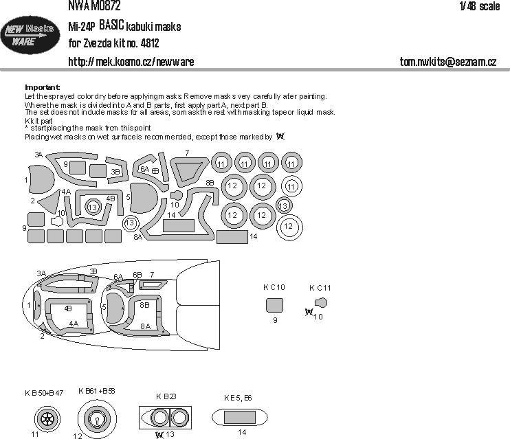 New Ware - 1/48 Mil Mi-24V/VP Basic kabuki masks canopy, wheels, windows and other clear parts, camouflage details (for Zvezda kits)